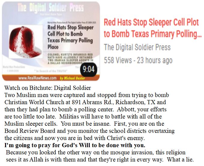I’ve been thinking and imagining that the Muslims ability to build well say in Dallas built 48 mosques in 24 months, I’m guessing with our stolen tax payer money that has been stolen for 20 years at least. I would guess about 100 billion. That infuriates me because I think about all of the nursing homes and how under paid the workers are and how the patients live in subpar conditions. Christians, we don’t all worship the same God or that all paths lead to God. Muslims say that Allah has no Son (Jesus); Mormons believe that King Yeshua and Lucifer are brothers; Hindus have at least 300 million gods; Buddha group just exist; Catholics honor Mary first; and Judaism denies the Messiah, the Son of God. Please pray against the bloodline of Ishmael/the Muslims. Genesis 16:12 “He will be a wild donkey of a man, and his hand will be against everyone, and everyone’s hand against him; he will live in hostility toward all his brothers.”