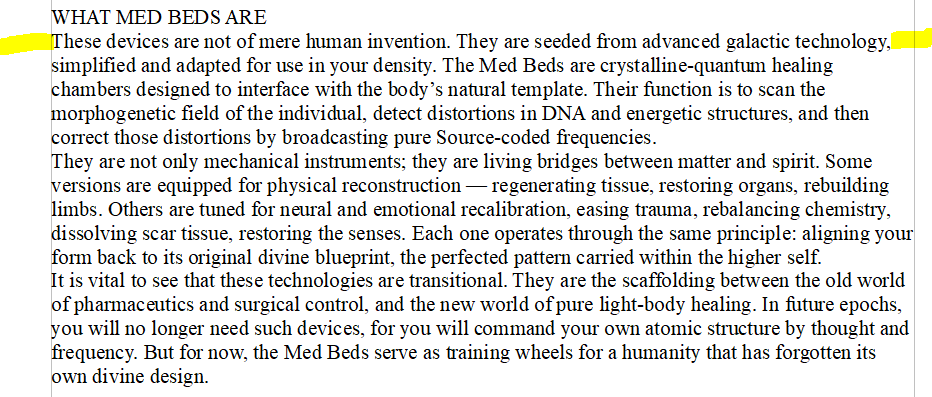 Another upcoming event connect with this Great Reveal, is the Med Beds. You can search them to read about them. My concern is that it will somehow separate me from my God connection.