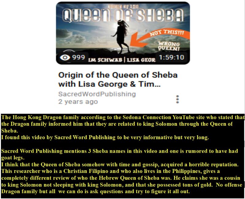 A clip below on the Dragon family history. Dave Schmidt’s site, The Sedona Connection, in my opinion connects to Egypt. Dave says that he lives in California.