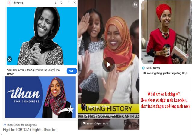 Bulging Male Neck Muscle. Also, males jawlines go behind the ear and females jawlines go in front of the ear. Both Ilhan and “AOC” have the sharp jawlines behind the ear(s).